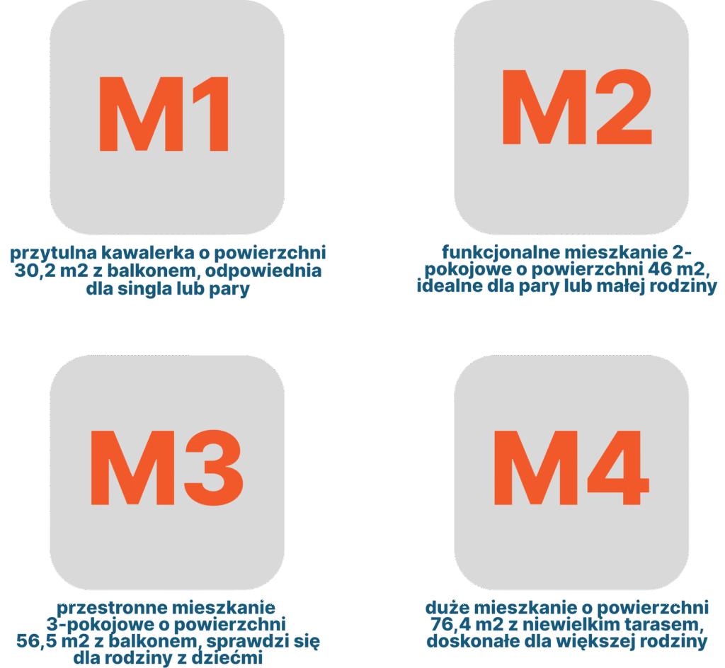 Projekt ten zakłada kompleksową przestrzeń, która spełni potrzeby mieszkańców i stworzy atrakcyjne warunki do życia. Naszym celem jest optymalne wykorzystanie każdego metra kwadratowego mieszkania, dostarczając różnorodne rozwiązania dla różnych typów mieszkań. W naszym osiedlu znajdą się mieszkania o zróżnicowanej liczbie pokoi. Każde mieszkanie będzie miało dobrze przemyślany układ, który będzie funkcjonalny i umożliwi swobodną aranżację przestrzeni, dostosowaną do indywidualnych potrzeb mieszkańców.