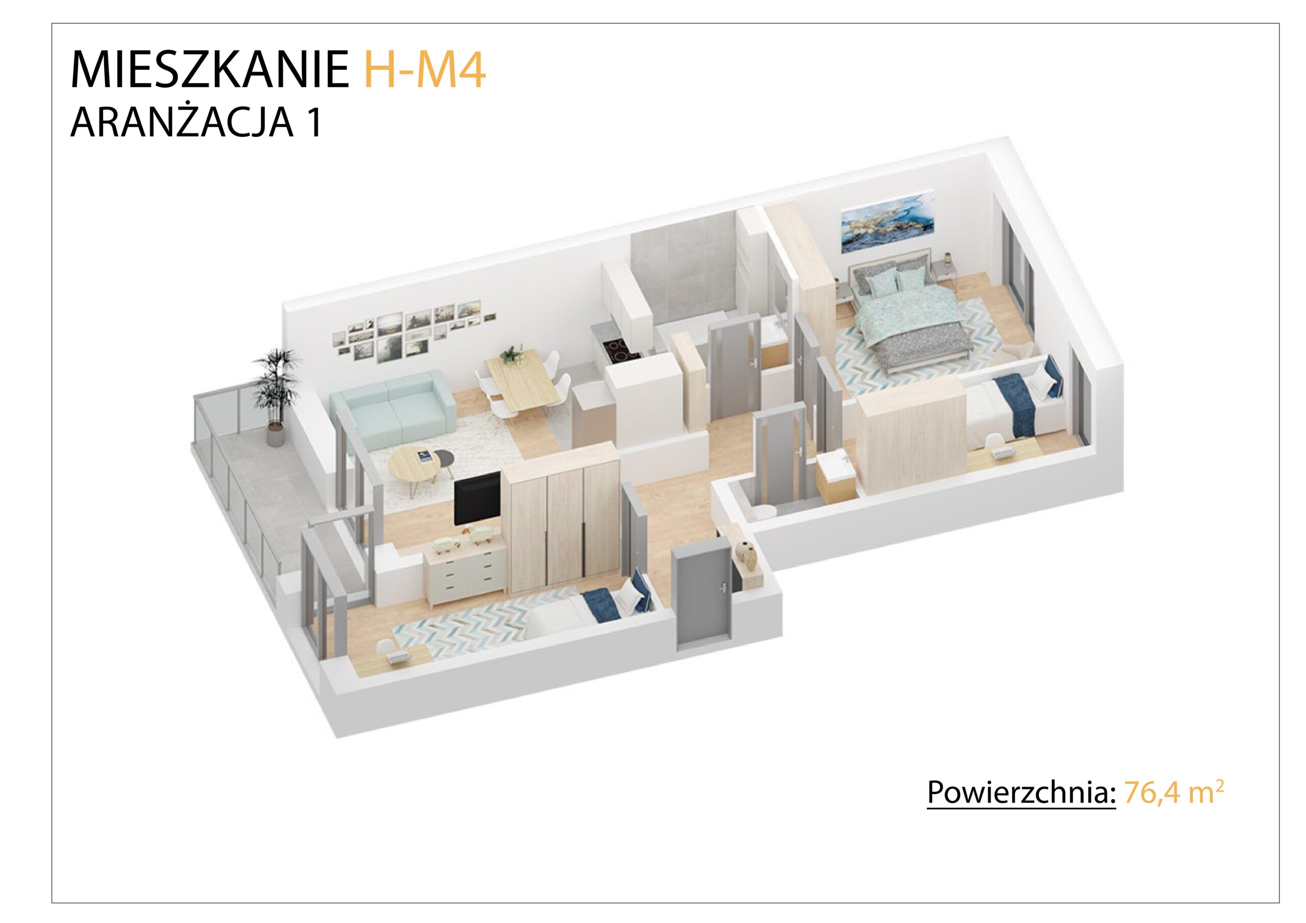 mieszkanie 4 (H-M4) – duże mieszkanie o powierzchni 76,4 m2 z niewielkim tarasem, doskonałe dla większej rodziny.